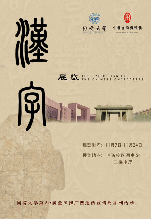 - 文字是人类智慧的结晶,是人类社会最伟大的发明之一。漫长的历史长河中,世界各地的先民曾创造出多种古老文字,它们是人类文明的重要标志。中国汉字作为最古的老文字之一,自产生以来始终绵延不断,沿用至今。 作为同济大学第25届全国推广普通话宣传周的重要活动项目之一,由同济大学、中国文字博物馆主办,同济大学国家语言文字推广基地、同济大学图书馆和同济大学博物馆承办的《汉字》展览,目前在医学图书馆...