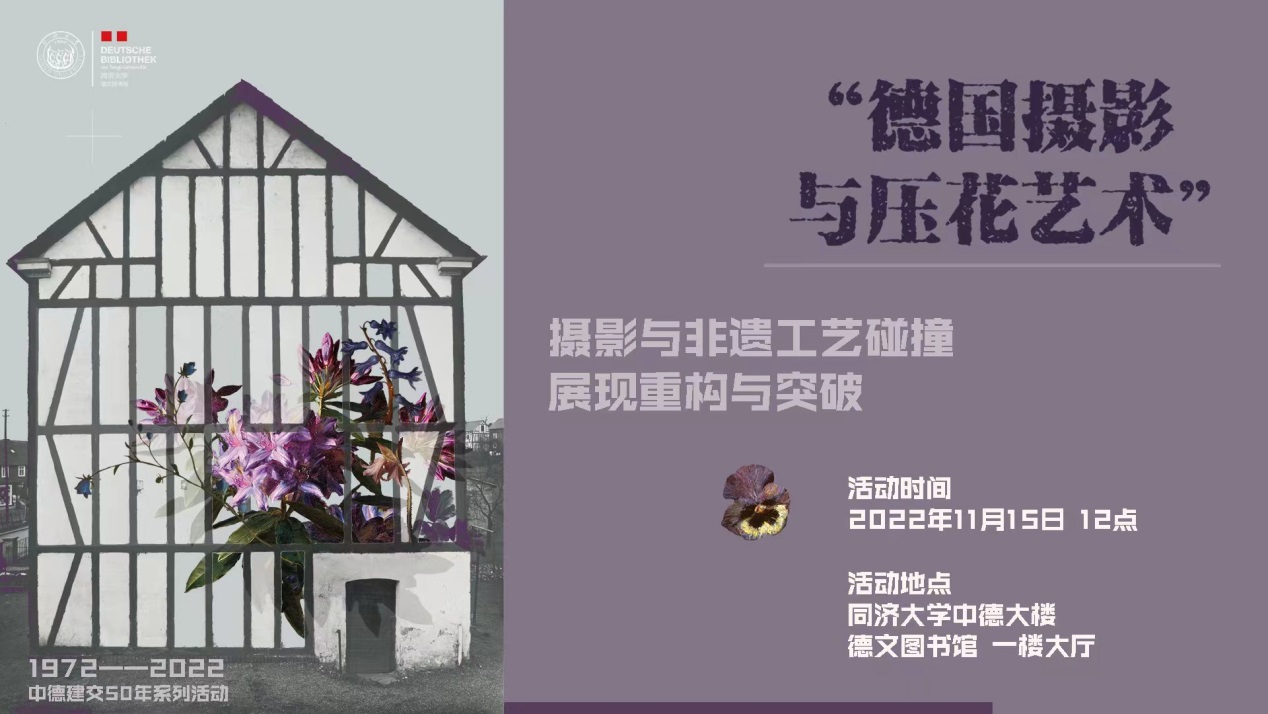 - 还记得儿时做叶脉书签、花叶画的经历吗?想要暂时放下手机,挥动灵巧的双手,定格大自然的美好吗?是否也想要深入理解中德文化和压花艺术呢?那就来参加德文图书馆举办的《重构与突破》——德国摄影与压花艺术活动吧! 压花艺术,又称押花艺术,是一种植物粘贴工艺,其原始材料为经过整理加工、脱水护色处理后的天然植物的花、枝、叶,根据其天然形态、纹脉、色泽,人为经过拼、...