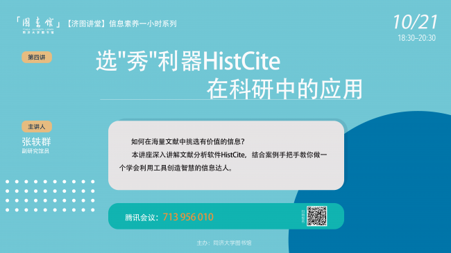 - 文献的查找和阅读,是研究生一项最基础且重要的技能。快速找到自己研究领域内最具有权威、被引用最多的文献,并清晰勾勒出关键文献之间的引用关系,锁定领域内早期、发展过程中及当下最具有代表性的文章,对我们阅读文献以及写作的效率的提高意义重大。本期讲座为大家带来神器——HistCite及其使用方法。 讲座主题:选“秀”利器HistCite在科研中的应用 讲座时间:2022年10月21日(周五)1...