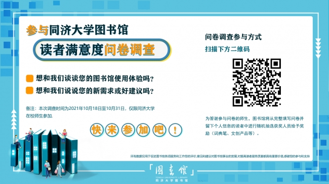 - 参与同济大学图书馆读者满意度问卷调查 一起为图书馆建言献策吧!