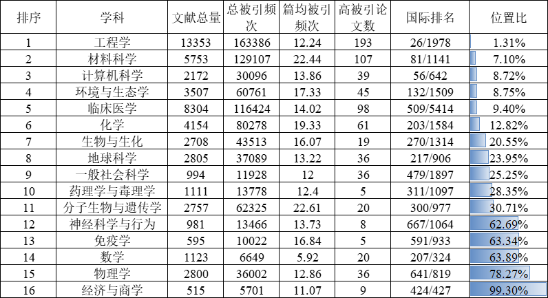 - 据科睿唯安ESI(基本科学指标)数据库2022年7月14日发布的最新数据(数据量统计时间范围为2012年1月1日-2022年4月30日)显示,我校进入ESI世界前1%的学科共有16个,它们是工程学、材料科学、计算机科学、环境与生态学、临床医学、化学、生物与生化、地球科学、一般社会科学、药理学与毒理学、分子生物与遗传学、神经科学与行为、免疫学、数学、物理学和经济与商学。其中,经济与商学首次进入世...