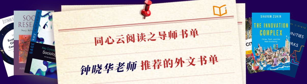 第二期同心云阅读之导师书单又和大家见面了!本期书单是由政治与国际关系学院的钟晓华老师为大家准备的。钟晓华老师现任职同济大学政治与国际关系学院社会学系,研究领域为城市更新、遗产保护、城市治理、创新创业。 读万卷书,行万里路,让我们用书籍推开新世界的大门,从社会学的角度来理解创新科技和城市变迁,重新体会与思考这个世界的新发展。 欢迎和我们一起分享你在阅读旅途中的所思、所想、所得,扫描...