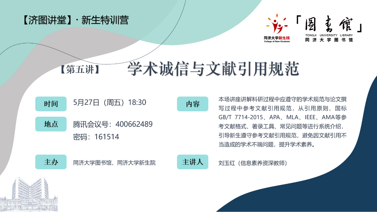 - 【济图讲堂】新生特训营:学术诚信与文献引用规范