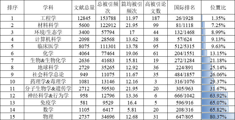 - 据科睿唯安ESI(基本科学指标)数据库2022年5月12日发布的最新数据(数据量统计时间范围为2012年1月1日-2022年2月28日)显示,我校进入ESI世界前1%的学科共有15个,它们是工程学、材料科学、环境/生态学、计算机科学、临床医学、化学、生物学&生物化学、地球科学、社会科学总论、药理学&毒理学、分子生物学&遗传学、神经科学&行为学、免疫学、数学和物理...