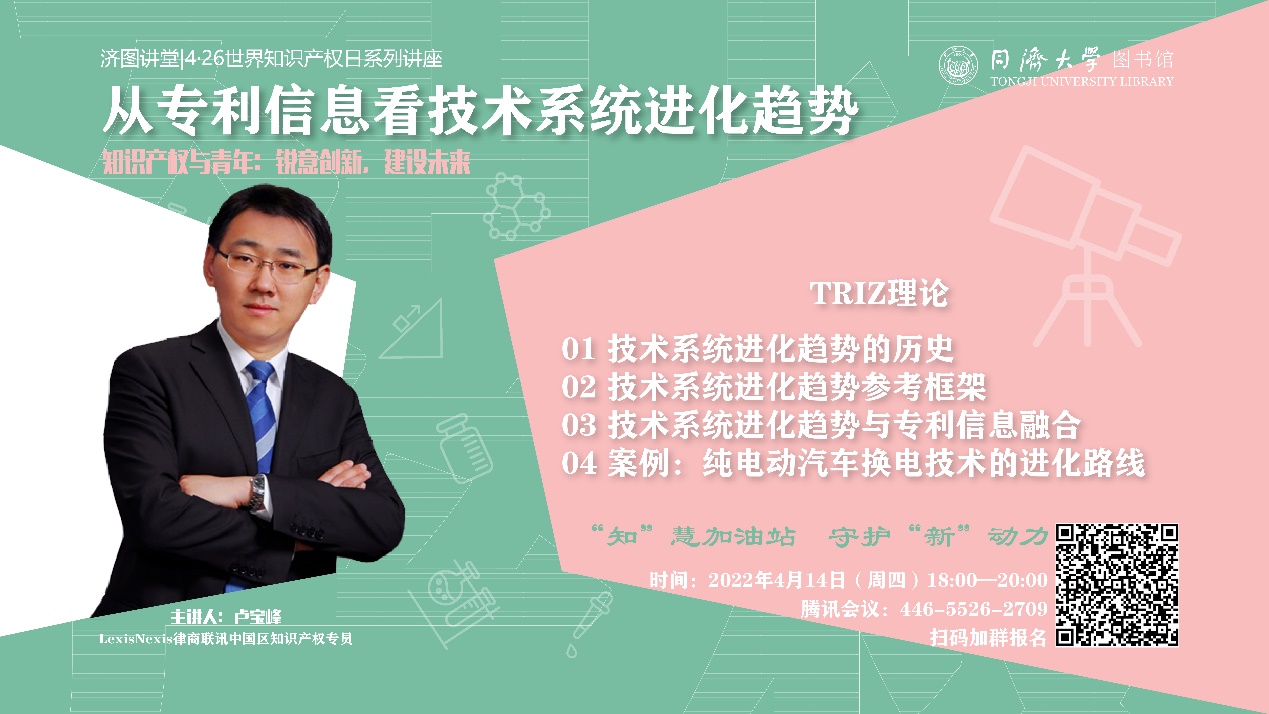 - “知”慧加油站,守护“新”动力 在高质量发展要求下,技术创新带动经济和社会发展的作用愈为凸显。如何提升创新效率,成为众多研发机构和科研人员关注的问题。与一般的建设工程不同,科研工作中方向的选择和趋势的把握尤为关键,错误的行进路线最终很难留下“一砖一瓦”。 本次主题讲座邀请律商联讯的知识产权专员卢宝锋先生介绍基于TRIZ的技术系统进化趋势理论和框架,以具体示例全面...
