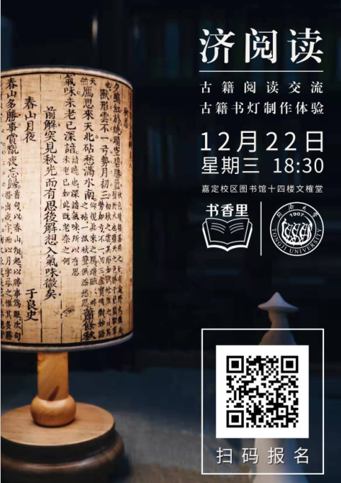 - 古籍书灯?书房插花?诗词讲座?请查收文榷堂为你准备的期末文化加餐 还记得文榷堂推出的古籍书签制作体验吗? 同学们一起读诗经,学论语,诵经典, 穿过历史的年轮,在泛黄的书页, 我们在图书馆邂逅珍贵的古籍原件, 交流思想碰撞的奇妙火花, 制作属于自己的古籍珍藏作品。 无论你是否正在为考研作最后的冲刺, 无论你是否忙于应对期末的考试, 12月22日晚上18:30...