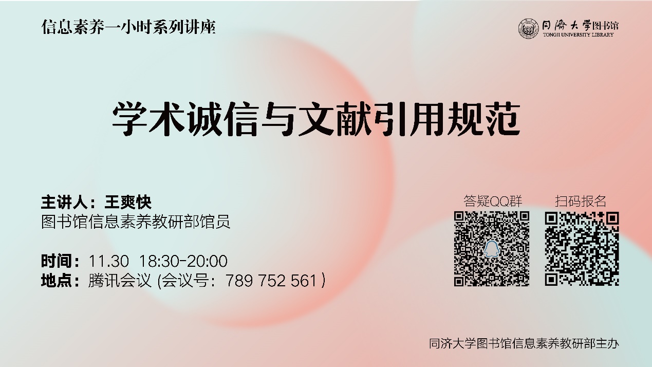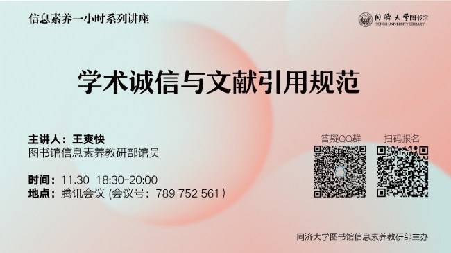 - 【讲座提醒】信息素养一小时·第六讲:学术诚信与文献引用规范,明晚开讲!