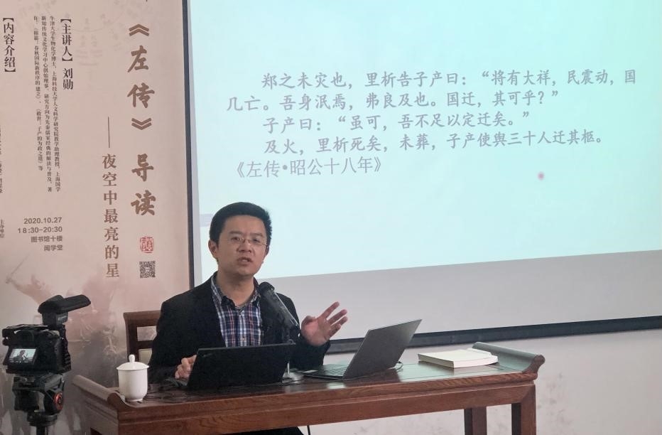 2021年11月3日晚星辰正亮,在同济大学闻学堂里,《夜空中最亮的星——<左传>导读》主题讲座由来自上海科技大学的刘勋老师热情开讲。 讲座围绕《左传》中一个神奇的故事展开——公元前525年,鲁国占星家梓慎据“彗尾扫大火”的天象大胆预言郑、宋、陈、魏四国都城五年后同日遭受火患;郑人裨灶同样预测并向执政卿子产提议献国宝消灾,子产不予理睬;大夫里析病重中劝说子产迁都避祸,但未道明缘由;...