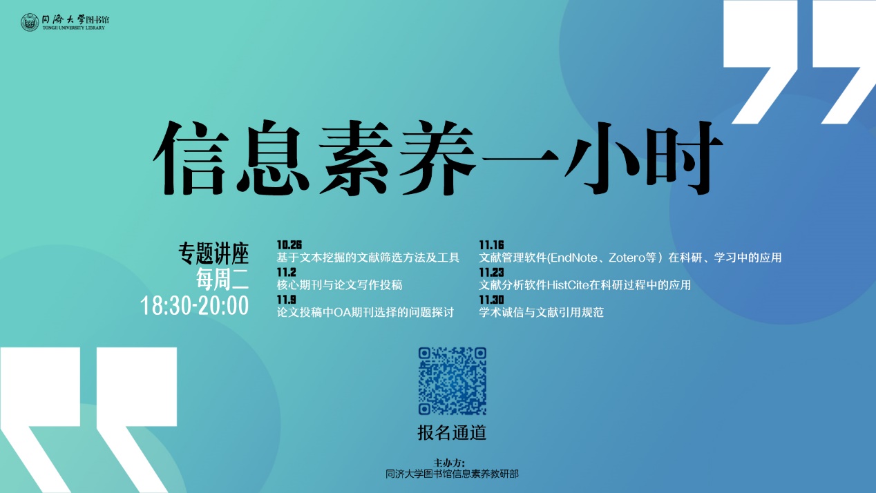 - 系列讲座预告 | 2021秋季同济大学图书馆信息素养一小时