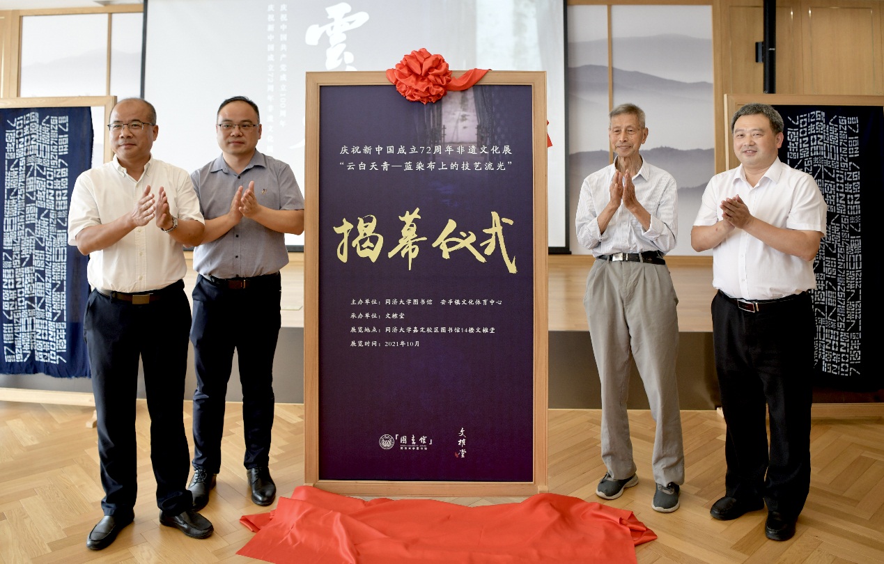- “庆祝中国共产党成立100周年、新中国成立72周年非遗文化展:云白天青——蓝染布上的技艺流光”9月28日上午在文榷堂揭幕,药斑布非遗传承人王元昌及弟子柳玉成、蓝印花布包袱收藏专家陈益锋,安亭镇党委宣传部、安亭镇文化体育服务中心相关负责人和学校党委宣传部、嘉定校区党工委、图书馆、同济大学教师书画协会相关负责人及学院师生代表参加了揭幕仪式。 学校党委宣传部负责人在致辞中...
