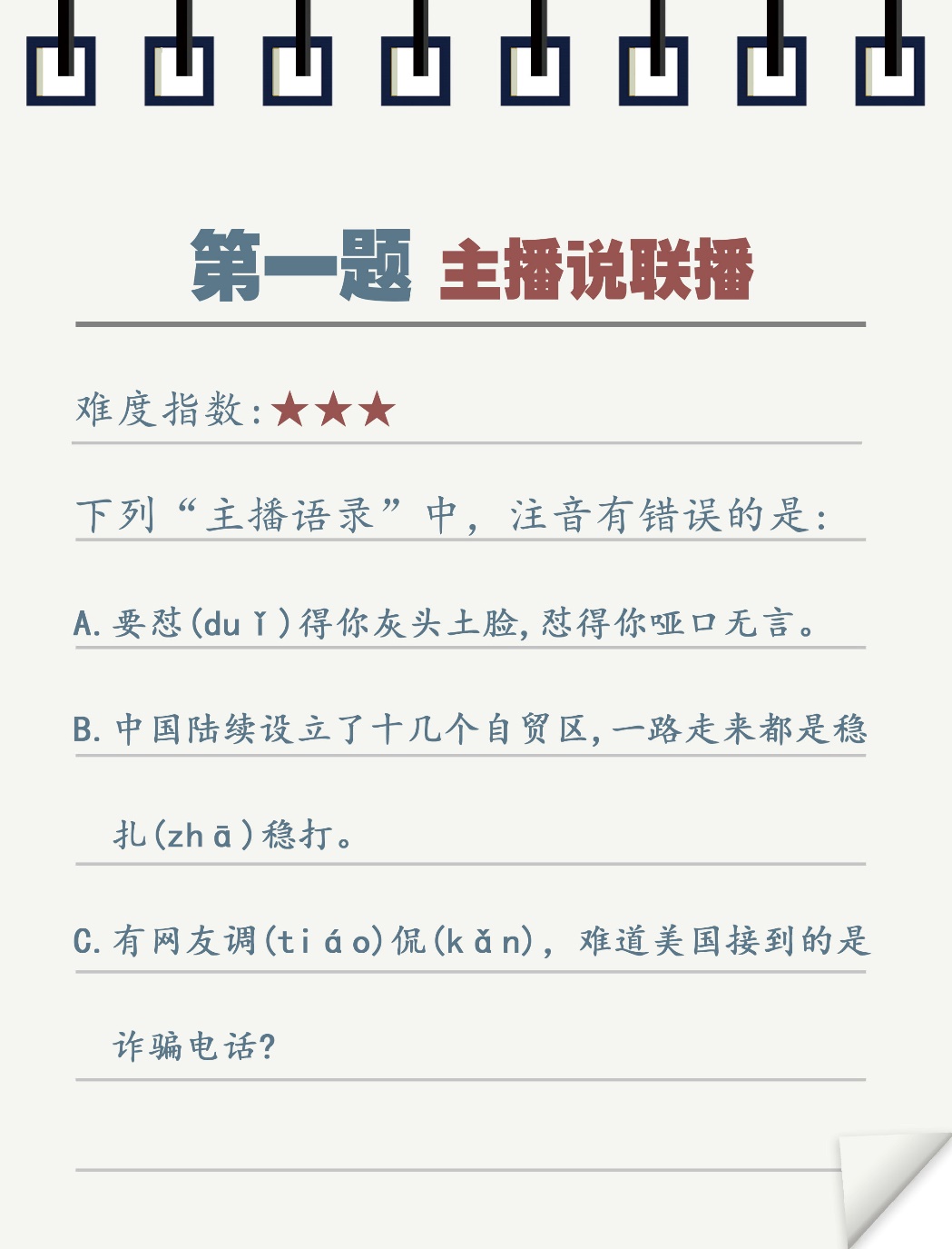 恭喜你闯过了第一关! 下面来挑战一下普通话大神——新闻联播主播们的语录, 选择你认为正确的答案吧! (答案见最后)