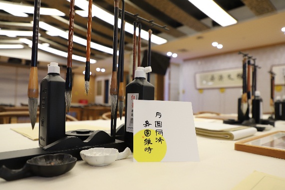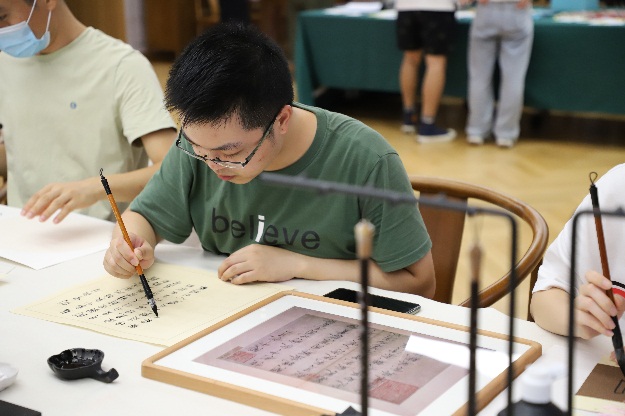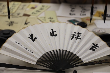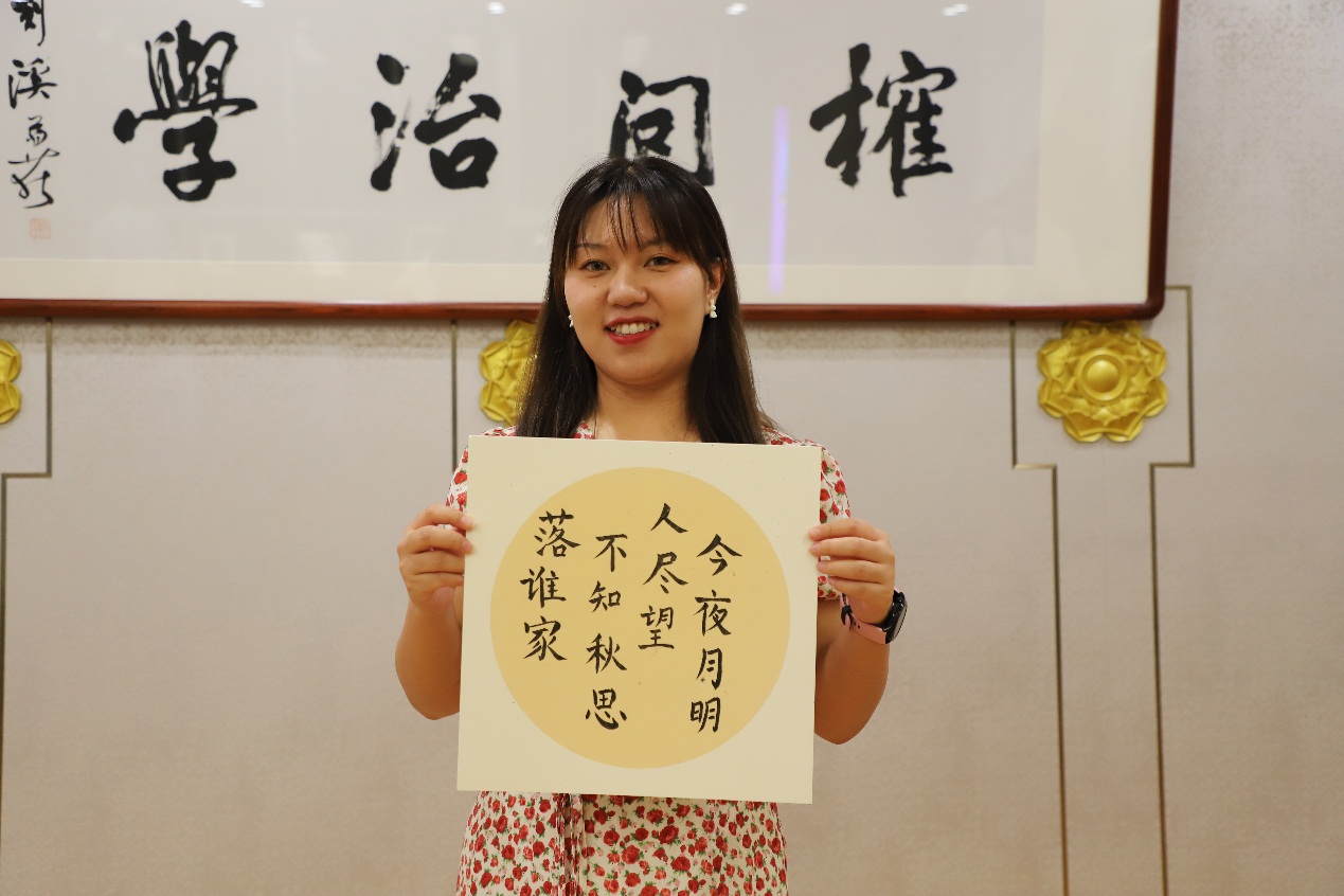 “翰墨书香”环节展出了晋代王献之《中秋帖》、宋徽宗赵佶《闰中秋月帖》、米芾《中秋登海岱楼作诗帖》供大家鉴赏,并为师生提供了笔墨纸砚,供师生自由书写。一张张书签、扇面、斗方和对联,使同学们感受到了书法的传承,也寄托了同学们的中秋情思。