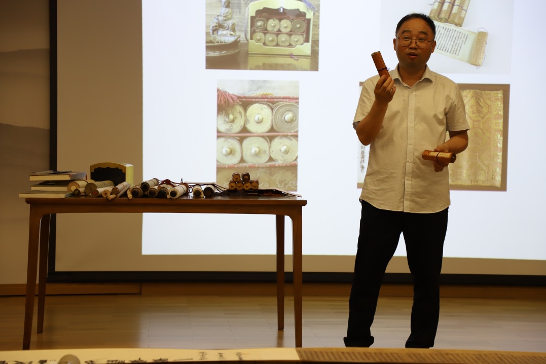 近日,礼敬中华、名家讲坛第五讲“潢治惶疑一一书画修复的疑惑与探索”在文榷堂顺利举办。扬帮古书画修复非遗传承人、乐观古笺(上海)纸科技中心主任、中国民主建国会上海市委文化体育委员会副主任费永明老师,为到场的师生们展开一场别具一格的讲座。