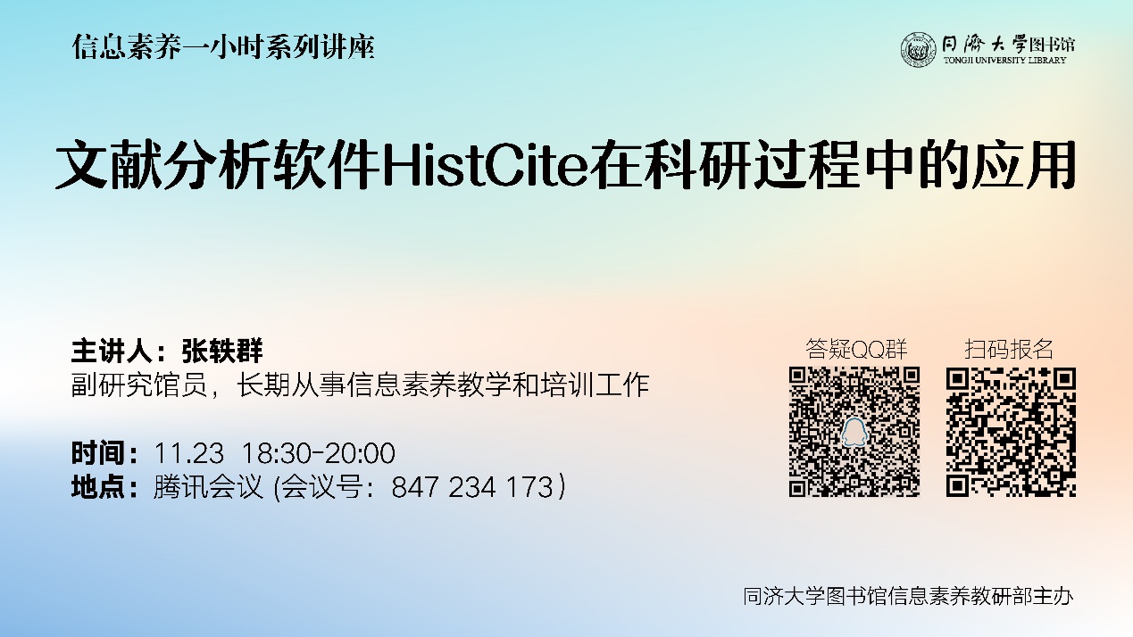 【讲座提醒】信息素养一小时·第五讲:科研神器-文献可视化分析工具HistCite |