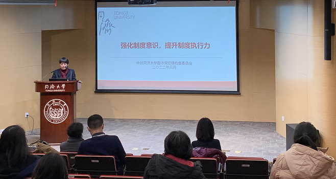 何青芳作了主题为《强化制度意识,提升制度执行力》的报告,通过解读文件、列举案例警示和查摆工作制度执行过程中存在的问题,对与会人员和采购等相关岗位馆员提出了工作要求。