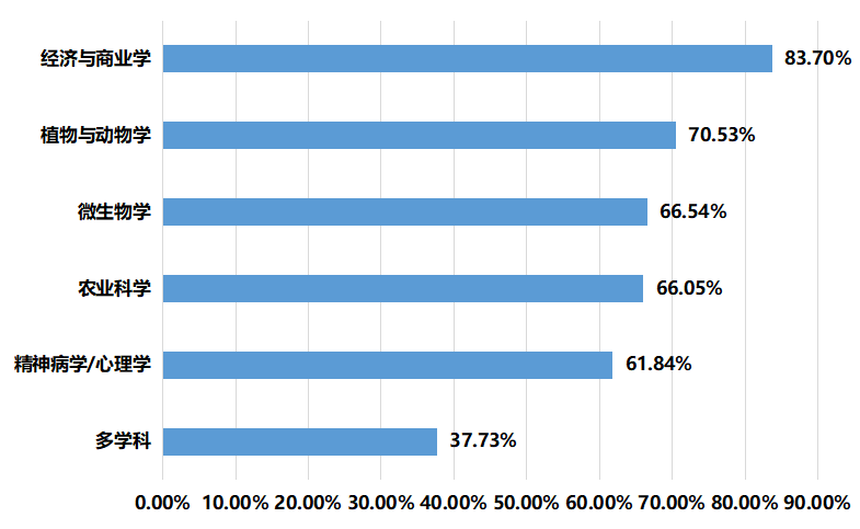 据科睿唯安ESI(基本科学指标)数据库2022年3月10日发布的最新数据(数据量统计时间范围为2011年1月1日-2021年12月31日)显示,我校进入ESI世界前1%的学科共有15个,它们是工程学、材料科学、临床医学、环境/生态学、计算机科学、化学、生物学&生物化学、社会科学总论、地球科学、药理学&毒理学、分子生物学&遗传学、免疫学、神经科学&行为学、数学和物理。 表:我校进入ESI前1%学科情况 我校进入ESI世界前1%的15个学科中,工程学、材料科学和临床医学进入世界前1‰,环境/生态学、计算机科学、化学、生物&生物化学、社会科学总论和地球科学进入世界前3‰。其中,社会科学总论和地球科学学科首次进入世界前3‰。 我校未进入ESI前1%的学科接近程度(等于我校该学科被引频次/进入ESI前1%学科被引频次阈值)如下图所示。其中,经济与商业学、植物与动物学、微生物学、农业科学、精神病学/心理学和多学科均进步显著。 图:我校未进入ESI前1%的学科接近程度 ESI是科睿唯安(Clarivate Analytics,原汤森路透)在汇集和分析SCIE/SSCI所收录的学术论文及其所引用的参考文献的基础上建立起来的分析型数据库,是一种衡量科学研究绩效、跟踪科学发展趋势的分析工具。ESI按22个学科领域,分别对全球的国家和地区、研究机构、论文以及个人的总被引频次进行滚动统计并排序,统计结果每2个月公布一次。高被引论文(Highly Cited Paper)是指同一年同一个ESI学科发表论文的被引用次数按照由高到低进行排序,排在前1%的论文。 如需更多信息,请联系同济大学图书馆咨询与情报服务部。 电话:021-65982352 邮箱:danliang@tongji.edu.cn 网址:http://www.lib.tongji.edu.cn/newlib/index.php?classid=12227 供稿人:梁丹 审核人:陈欣、姚俊兰、周玮 |