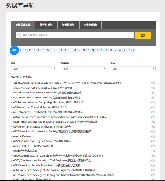 (ASC))综合学科参考类全文数据库、SpringerLink期刊数据库,这三个数据库都是综合类期刊全文数据库,大部分都在WOS和EI中检索到,也可单独登录数据库检索。