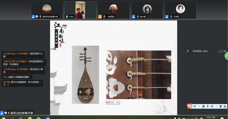 接续摄影艺术,如约品味江南的优雅婉约世界,著名评弹表演艺术家、国家一级演员、中国曲艺最高奖“牡丹表演奖”周红老师于5月2日19点,在云端为大家带来了一场别开生面的评弹互动讲座。周红老师以一曲婉转悠扬,细腻灵动的《送人游吴》弹词开启讲座,她从“评书”、“弹奏”与“评弹”的区别引入,引出“苏州评弹”的独特之处。讲座中周红老师边讲边唱,吴侬软语娓娓动听,抑扬顿挫。