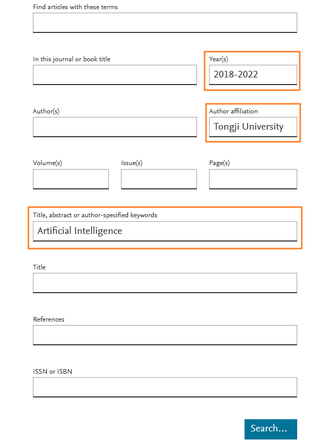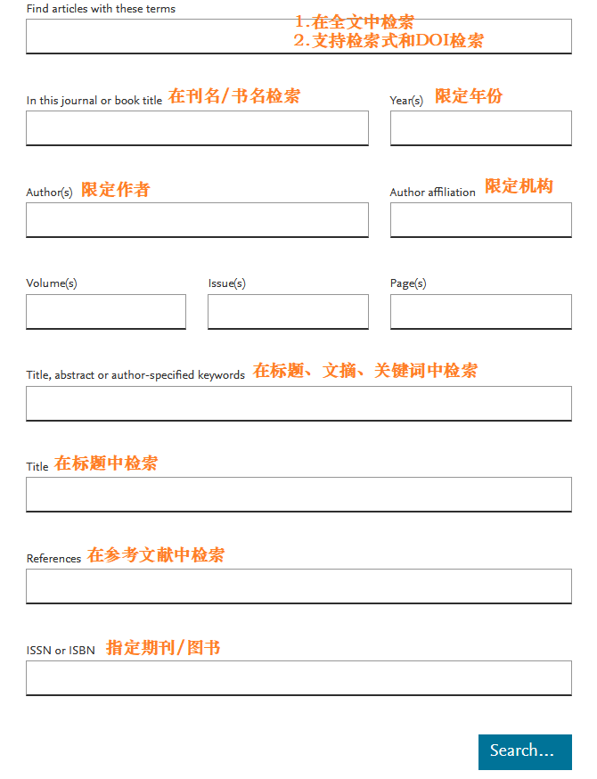 高级检索限定的条件包括刊名/书名、年份、作者、机构、关键字等,如下图。