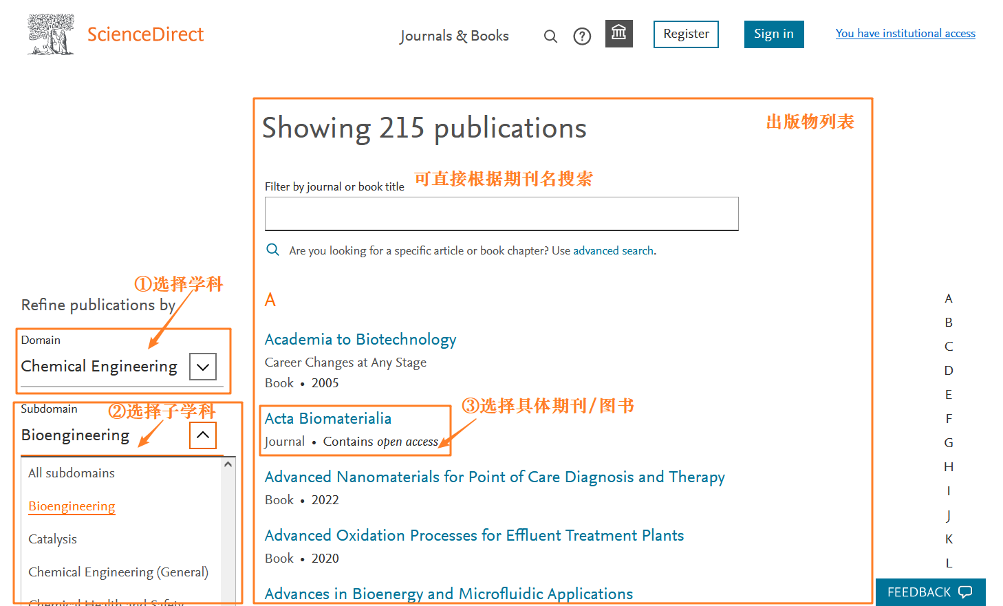 & Books浏览期刊/图书,也可以点击Register或Sign
