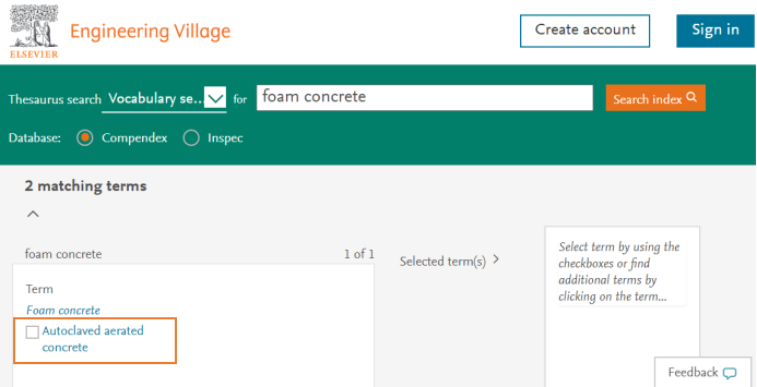 EV(Engineering Village)数据库,即我们常说的美国工程索引EI数据库,是世界上著名的工程文献数据库,提供常用的标题、摘要、作者等检索,但当研究者无法精准表达英文关键词时,怎么办呢?EV叙词表可以帮助找到规范表达,助力精准检索。本期【抗疫研学】,我们一起来解锁EV平台叙词表及其检索应用。 一、EV平台的受控词与叙词表是什么? 受控词(Cotrolled Terms):针对工程相关学科,经由各个学科专家规范化处理的能表达学科主题概念的词,具有精准性、专指性等特征,用以EV平台收录论文主要研究主题的标引及检索,如:泡沫混凝土的受控词为Autoclaved aerated concrete。同济大学图书馆购买的EV平台两个数据库EI-Compendex、Inspec均提供控制词标引和检索。 叙词表(Thesaurus):是由受控词组成的词表,将同一主题不同表述的受控词,按主题归类,避免了同一概念不同表达造成漏检,或一个词语有多种含义导致错检的问题。 叙词表一方面可以帮助我们找到规范词,另一方面可以利用该词找到相关的广义概念、狭义概念、相关叙词等进行逻辑组合搜索,从而提高文献检索的查准率。 在Engineering Village数据库首页可以查看最新的受控词。