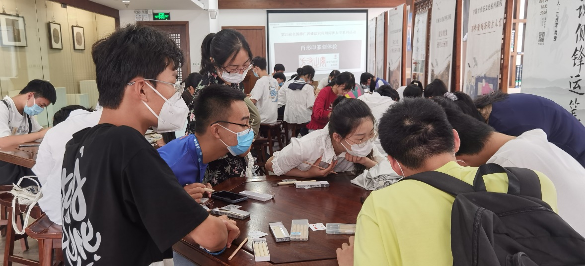9月16日中午,同济大学图书馆闻学堂开展了2022秋季迎新及第25届全国推广普通话宣传周同济大学系列活动之“肖形篆刻”体验,吸引了许多大一新生踊跃参与。