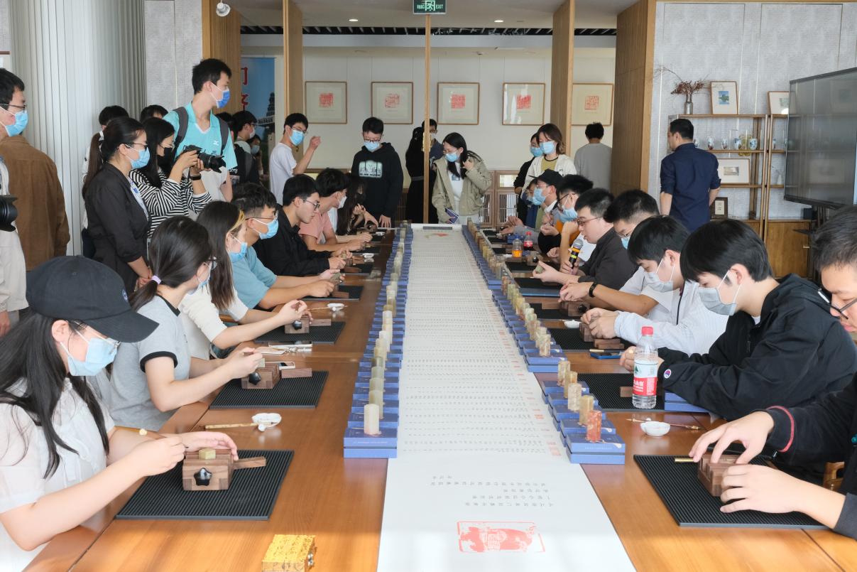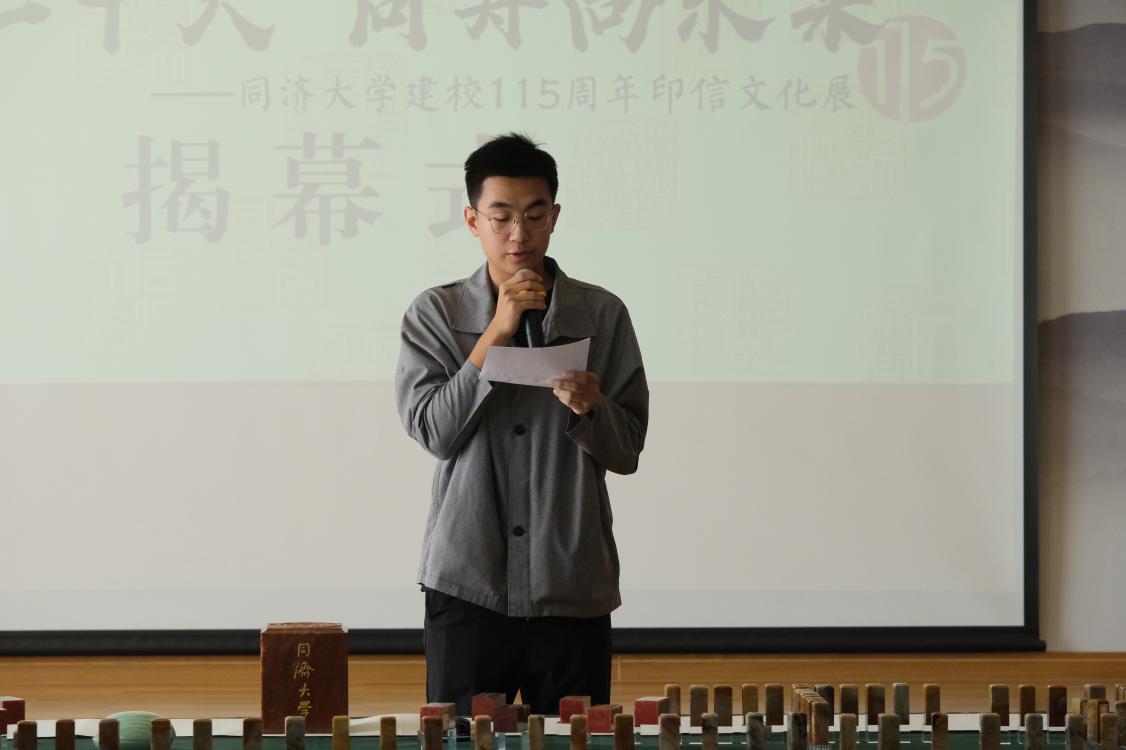 在党的二十大胜利召开之际,同济师生相聚嘉定校区图书馆文榷堂,举办“济遇二十大 同舟向未来”同济人献礼二十大印信文化展揭幕仪式。党委副书记吴广明出席并发表讲话,图书馆陈欣馆长及嘉定校区相关部门负责人和师生代表出席揭幕仪式。揭幕仪式由图书馆党委副书记周玮主持,建校115周年印信文化展印文征集师生代表、展览策展、筹备、设计、布展学生团队代表、点墨轩学生书画协会代表现场做交流发言。 吴广明、陈欣为展览主章揭印 吴广明和师生校友代表盖印“人民同济”“红色同济”“时代同济”“青春同济”主题印章 展览展出了献礼党的二十大、同济精神和同济文化相关印章150余枚以及展示建党百年历程的篆刻印章长卷和同济印记10米长卷。为庆祝建校115周年,学校面向师生校友征集了115枚印章的印文,由浙江省印信文化体验馆馆长姜四海先生根据印文选取四大名石之一昌化石进行篆刻成章并赠送给学校。艺术传媒学院06级校友、青年篆刻家陈才受邀为党的二十大胜利召开篆刻 “人民同济”“红色同济”“时代同济”“青春同济”四枚主题印章并赠送给学校。吴广明为姜四海、陈才颁发了捐赠证书。提供印文征集入选方案师生还可以在揭幕仪式现场领取学校赠送给他们的专属同济印。展览现场还举办了钤印雅集和篆刻体验活动。 浙江印信文化体验馆姜四海先生发表线上致辞 吴广明为陈才颁发捐赠证书 嘉宾为学生团队代表颁发纪念品 印章篆刻与印信文化,是中华传统优秀文化的重要组成。凝聚着同济师生校友对建党精神,对同济精神和同济文化理解的印文内容,是同济建校115周年镌刻的独特印记,彰显了同济人对祖国,对党和人民,对学校的热爱与深情,是同济人弥足珍贵的精神财富,是新时代同济文化的精神内涵。 吴广明在致辞中指出,此次展览形式丰富多样,融合了老师和同学们的集体智慧。从展览的策划、筹备、设计、布展全过程,“中国玉石及玉文化鉴赏”、“珠宝鉴赏”等同济大学立德树人示范课、国家级一流本科课程的同学全程参与;电信学院师生团队根据征集的印文内容研发了“字字珠济“小程序;图书馆在学校网站、官微上连续推出了8期的”同舟共济印记“推文,系统回顾了学校的办学历史,展示了这些印文的背后丰富的文化内涵。点墨轩学生书画协会题写台签,序文和跋文,制作了”同济印记“10米长卷。展览不仅展示了”同济智慧”,更展示了“同济自信”,用实际行动落实“三全育人”实施方案。 参加展览的学生代表纷纷交流了自己参与展览的感想和体会。同济大学生命科学与技术学院19级直博生刘威彤,本次有两个印文方案入选。“道阻且长,行则将至”摘自2021年7月6日习近平主席在中国共产党与世界政党领导人峰会上所发表的题为《加强政党合作 共谋人民幸福》的主旨讲话。第二则“生生不息,历久弥新” 彰显同济大学多学科上下求索,科教兴国的责任与精神。她表示:“时值二十大,习近平主席提出我们国家一些关键核心技术实现突破,进入创新型国家行列希望我们同济大学在科技迭代更新的浪潮中蓬勃发展,与祖国同行,以科教济世,生生不息,历久弥新。” 电信学院本科生许一航提供的印文方案“生命力 烟火气 人情味”入选,他表示:“在若干个115年后,我们仍会看到,这支具有红色生命力的同济之舟,它浸透着人间烟火,承载着世间人情,于一次又一次风起云涌与惊涛骇浪中幡然穿越,并一直昂然前行,驶向一个又一个未来。” 生命科学与技术学院19级直博生刘威彤发言 电信学院本科生许一航发言 软件学院2020级学生刘睿萌,代表小程序“字字珠济”的师生开发团队,谈到自己如何结合学科专业特长和同济印信文化,开发小程序,为文化传播和传承推广贡献力量的实践过程。软件学院21级本科生王蔚达作为此次展览的海报设计者,分享了结合“中国玉石与玉文化”课程参与策展的心得体会,展课结合的文化实践让他们体验到了难得的机会。 软件学院2020级本科生刘睿萌发言 软件学院21级本科生王蔚达发言 点墨轩学生书画社社长、交通运输工程学院21级硕士研究生姜淏然表示:“青年强,则国家强。正值二十大召开之际,当代中国青年生逢其时,施展才干的舞台无比广阔,我们将以书画为平台,燃青春之火,谱奋斗篇章,展现同济学子风采,贡献青年力量。” 交通运输工程学院21级硕士研究生姜淏然发言 习近平总书记在二十大报告中指出,“推进文化自信自强,铸就社会主义文化新辉煌。”言简意深,擘画了当下及未来中国文化发展的蓝图。学习贯彻落实党的二十大精神,行动是最好的语言。此次展览的揭幕就是同济人对二十大精神的解读,对落实立德树人根本任务,为党育人,为国育才的文化实践。我们要继承发扬,矢志不移,笃行不怠,埋头苦干,奋勇前进,办好人民满意的教育,为实现中华民族伟大复兴的中国梦贡献同济人的智慧力量。 陈才校友指导同学们进行现场篆刻体验 |