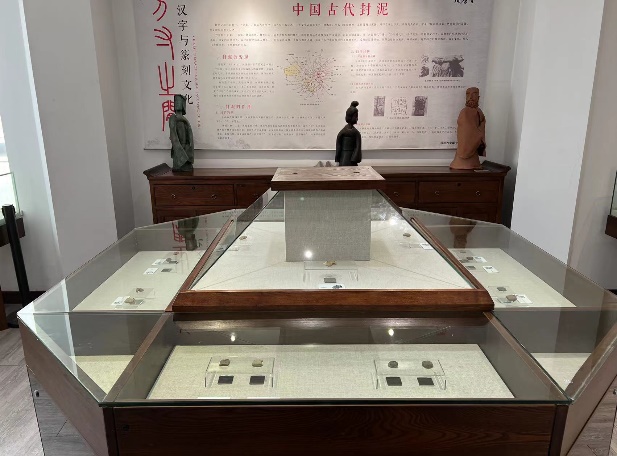 “方寸之间——中国印章篆刻文化”主题展览展出了来自平湖玺印篆刻博物馆的馆藏品,包含有战国、秦、西汉、新莽、东汉、魏晋等多个时期的封泥展品共60余枚,还包括古玺印封泥原拓拓片与原打印谱印文珍品,其中不乏出自文彭、何震、邓石如、汪关、李流芳、陈鸿寿、赵之谦等名家的作品,也有近代青年篆刻家陈才及其学生的爱国主题系列篆刻作品,同时展示有《中国著名书画家印谱》、《吴昌硕印谱》、《金代官印》、《集古印谱》等特藏精品印谱类藏书,以及由孙慰祖主编的先期面世的《中国古代封泥全集》,将不同类型的实物与展板相结合,生动再现了中国印章与封泥的历史源流和发展脉络,领略蕴藏在汉字传承过程中生生不息的中华智慧。