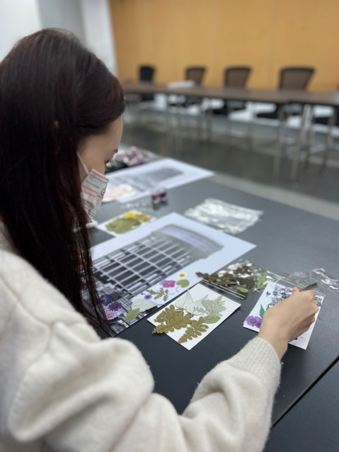 为纪念中德建交五十周年,德文图书馆结合压花艺术、摄影艺术,将中西艺术和传统文化融合,特邀我校建筑与城市规划学院博士生导师陈静老师开展《重构与突破》——德国摄影与压花艺术体验活动。陈静老师开设的《现代生命科学与人居环境》专业选修课,设置“一叶知秋”作业展实践教学模块,学生需搜集植物的落叶、果实、种子、花瓣、枯枝等材料,加以构思创作,来研究生命循环的四个过程——孕育、生长、凋零、转化,从而引导学生从多个不同视角认识生命科学。