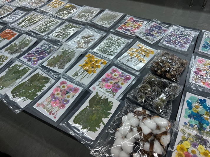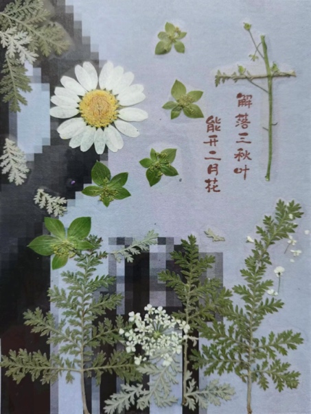 3)完成植物花材的粘贴:使用胶水,自行发挥天马行空的想象力设计创作; 4)预期成果展示: