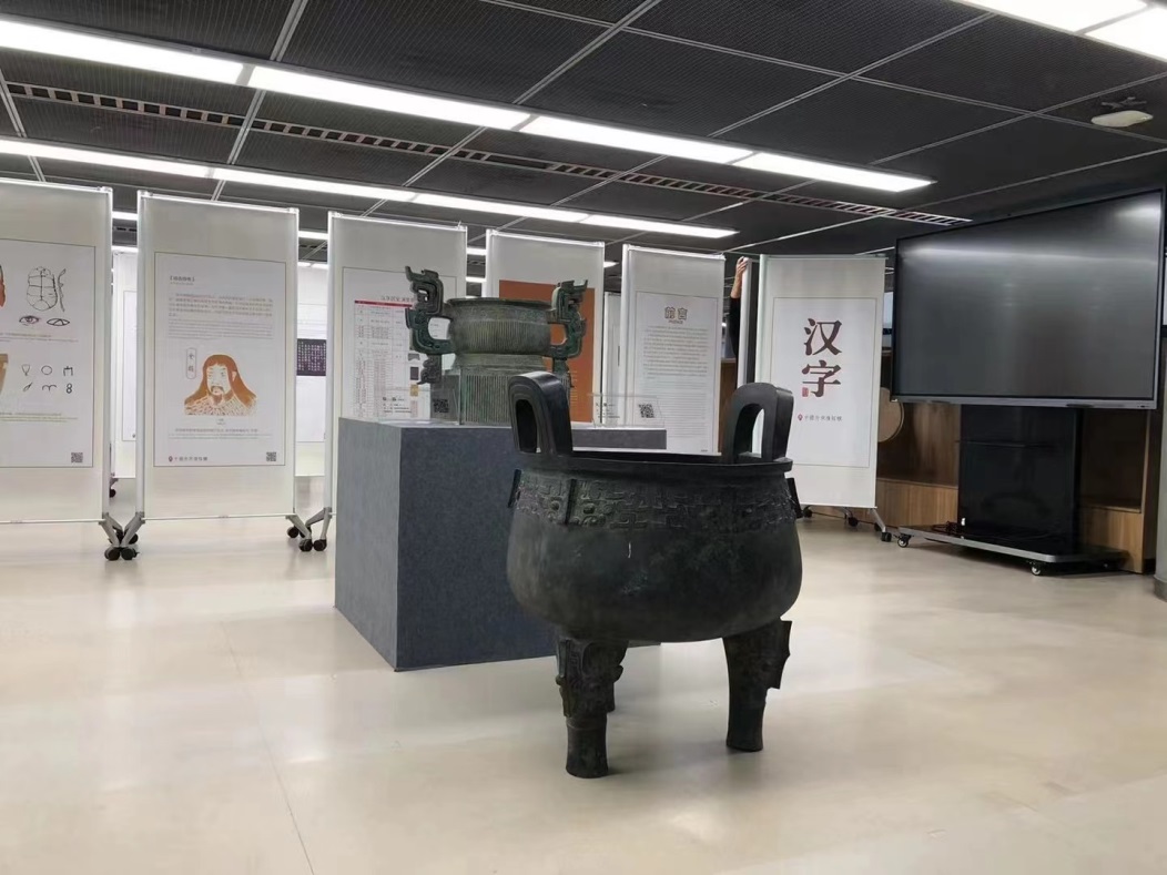 作为同济大学第25届全国推广普通话宣传周的重要延伸活动项目之一——由同济大学和中国文字博物馆合作举办、同济大学国家语言文字推广基地、同济大学图书馆和同学大学博物馆承办的《汉字》巡展近期在同济大学嘉定校区图书馆展出。 文字是人类智慧的结晶,是人类社会最伟大的发明和创造。在人类漫长的历史长河中,世界各地的先民曾创造出多种古老的文字,它们是人类文明的重要标志。汉字是华夏民族对世界最无与伦比的贡献,是全人类的宝贵财富。作为最古老文字之一的中国汉字,自产生以来始终绵延不断,沿用至今。它传承和弘扬了中华文明,对中国传统文化的发展以及多民族国家的形成都有着非常重要的推动作用。汉字以其独特的表意、表音方式,成为中国古代文化的活化石。面对现代化社会的巨大变革,汉字又以其顽强的生命力,在信息化的时代获得新生。如今,作为联合国六种正式工作文字之一,汉字是世界上使用人数最多的文字。 《汉字》展,通过近80块精心设计的展板和两件1:1的西周青铜礼器复制品,主要讲述了汉字的起源、发展和传播的轨迹,展示汉字书写艺术神奇魅力以及数千年积淀下来的汉字文化精华,浓缩汉字对推动中华文明乃至世界文明的巨大贡献。展览主办方希望通过这个展览,从传统文化中汲取精神素养,以高度的文化自觉和文化自信传播优秀传统文化,弘扬民族精神,践行社会主义核心价值观。