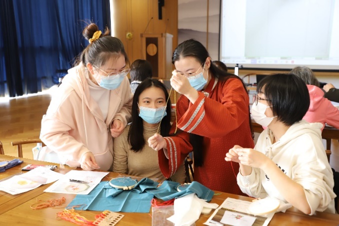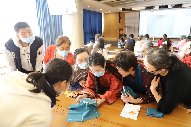 “日暮堂前花蕊娇,争拈小笔上床描。 绣成安向春园里,引得黄莺下柳条。” 为传承中华优秀传统文化,丰富嘉定校区师生的文化生活,11月15日中午,由同济大学图书馆、同济大学工会共同主办的“江南雅韵——苏绣主题文化展”在文榷堂揭幕,同时举办了刺绣文化实践活动。三十余名师生在嘉定苏绣非遗传承人陈碧娴老师的带领下,了解苏绣的基本风格以及创作技巧,并通过自己动手实践,创作出属于自己的独一无二的绣品。 “江南雅韵——苏绣主题文化展”展出了嘉定区非遗传承人陈碧娴团队绣制的挂画、屏风、摆件、团扇、丝巾等苏绣文化产品30余幅,展示了江南苏绣文化的传统魅力。苏绣起源于苏州,是四大名绣之一,为国家级非物质文化遗产。苏绣具有图案秀丽、构思巧妙、绣工细致、针法活泼、色彩清雅的独特风格,地方特色浓郁。绣技具有“平、齐、细、密、和、光、顺、匀”的特点。在种类上,苏绣作品主要可分为零剪、戏衣、挂屏三大类,装饰性与实用性兼备;其中以“双面绣”作品最为精美。苏绣作品山水能分远近之趣;楼阁具现深邃之体;人物能有瞻眺生动之情;花鸟能报绰约亲昵之态,以其逼真的艺术效果闻名。 在实践环节,陈碧娴为师生介绍并讲解了苏绣的几种针法运用,如完全用垂直线绣的直针,表现弯曲形体的盘针以及较为复杂的套针等。师生通过现学的刺绣方法,穿针引线,动手绣制雅致的枫叶、红豆、银杏等,体验传统技艺的静雅之美。 参加活动的师生表示,通过近距离观看精美的苏绣作品,对江南文化的精致秀雅有了更深的了解,通过老师的介绍,去感受苏绣的美和传承,并通过自己动手实践,对中华优秀传统文化蕴含的匠心和审美意趣也有了全新认识。作为嘉定校区的师生文化沙龙,希望通过非遗进校园,让师生结合劳动实践和文化实践,增强师生的凝聚力,体会中华优秀传统文化的魅力,丰富我们的校园文化生活,增强文化自信。