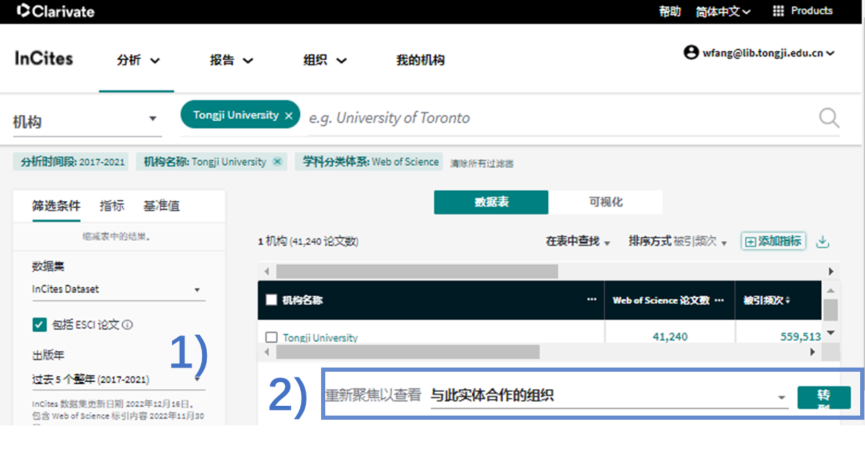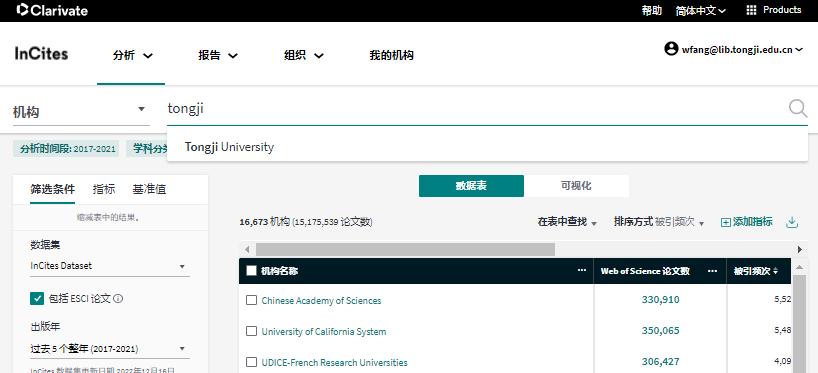 更多数据库的帮助信息请访问:https://incites.help.clarivate.com/Content/home.htm 也可以邮件咨询数据库负责人:方雯,wfang@lib.tongji.edu.cn