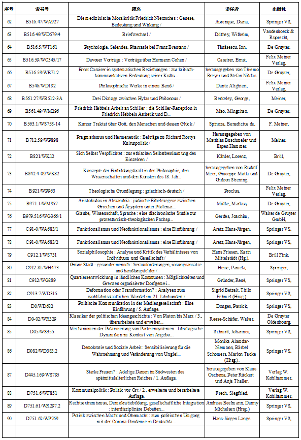 为了进一步做好德文图书馆纸本图书资源的建设,我们有幸得到德国问题研究所和人文学院等有关单位的专家学者们的大力支持,他们为本次新书书目的筛选工作做了大量工作,再次表示感谢!本期新书约为150册,以飨广大德语文献阅读者。在未来的纸本图书的建设过程中,德文图书馆将会与校内研究德语文献的专家学者们建立更广泛的联系,以逐步摸索出具有同济特色的德文纸本馆藏建设原则,以期进一步助力校内师生对德研究的全面开展。如您有德文相关资源需求,欢迎您邮件至xjzeng@lib.tongji.edu.cn。 【德图新书速递】哲学主题图书 推荐人:陈彦祺