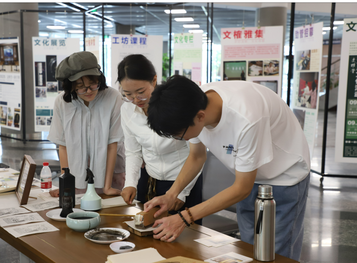 本次文化市集由图书馆精心策划,以“展、学、玩”多维联动为特色,设置了“文化长廊”“文榷工坊”和“奇遇体验”三大板块,内容丰富、互动性强,旨在让师生在墨香与印拓之间走近历史、感知文化、启迪心智。