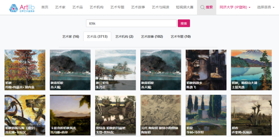 我们可以在数据库中点击搜索按钮,查找自己感兴趣的画作: