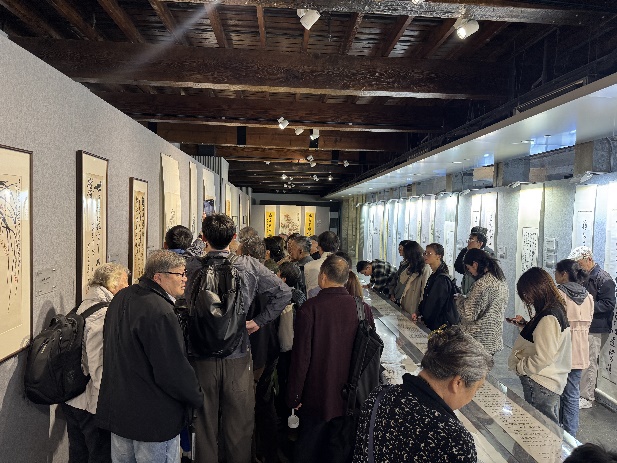 讲解互动过后,江理平先生落座展厅内“望云楼”,为师生及书画爱好者现场题字。本次讲座,江理平先生以其跨力学与艺术的独特学术背景,数十年沉潜书画的深厚功力,成功地将国画深奥的“技法”与“意韵”关系条分缕析。这不仅是一场知识的传授,更是一次审美的启迪,让师生们在墨韵江山中,深切领略到中华传统书画艺术的永恒魅力。