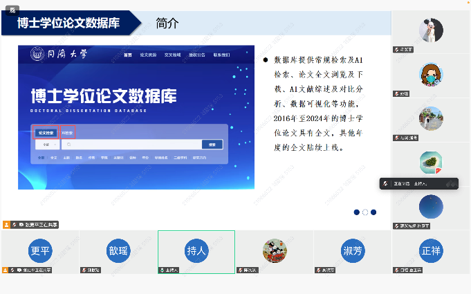 2025年12月11日,同济大学图书馆系统交流会(第七期)在四平路校区顺利召开。图书馆副馆长马爽出席会议,资源建设与管理部、咨询与情报服务部、系统管理部等部门相关负责馆员,以及全校21个院系图书分馆的27位老师以线上线下相结合的方式参会。 马爽副馆长在致辞中指出,在学校“数智化、绿色化、融合化”发展战略引领下,图书馆正处于从传统资源保障向智慧服务赋能转型的关键时期。她强调,院系分馆是图书馆服务体系延伸至学科前沿的重要支撑,总馆将与各分馆一道,以“共答一道题”的协同意识,持续夯实资源共建共享基础,携手构建智慧化学术服务新生态,希望充分借助本次会议分享经验、碰撞思想、凝聚共识,共同推动馆院协同发展迈上新台阶。 推进智能升级,赋能服务转型新路径。系统管理部馆员崔馨予介绍了新一代“AI馆员”智能服务平台的建设成效。该平台深度融合大模型技术与图书馆知识体系,通过多终端渠道为师生提供智能咨询、资源发现、空间预约等一体化服务,已成为智慧图书馆建设的重要服务门户。崔老师还分享了学院分馆设备运行状况、图书资产清点系统及“慧源跨阅”服务,充分展现了信息化手段对服务协同、资源互通和学术共享的有力支撑。 深化数据赋能,构建科研支持新体系。咨询与情报服务部主任姚俊兰现场演示了同济大学博士学位论文数据库的建设成效,并对该平台在学术资源深度利用方面的支撑作用进行了详细解读。此外,姚老师还系统梳理了图书馆从咨询服务、绩效分析到前沿追踪的全链条情报服务体系。 规范管理流程,提升资产运行新效能。资源建设与管理部馆员魏雯婕详细阐述了图书资产管理中剔旧与盘点两大关键环节的规范化流程与操作要点,结合具体案例,清晰讲解了从申请、论证、公示、审批到处置的完整管理流程,强调了年度资产盘点对确保账实相符、优化馆藏结构的重要作用,为各分馆进一步提升资产管理的精细化、规范化水平提供了明确指导。 在自由交流环节,与会老师围绕平台数据深度利用、剔旧盘点实务操作等内容展开了热烈交流讨论。大家一致认为,在数智化发展浪潮下,总馆与各分馆更应同心同向、优势互补,协同破解管理与服务中的共性难题与实操堵点,着力构建“总馆强中枢、分馆显特色”的协同发展新格局。 自2019年建立常态化交流机制以来,图书馆系统交流会已成为推动馆院务实合作、共谋发展的重要平台。下一步,图书馆将继续与院系分馆同心协力,以共建共享深化资源整合,以智慧服务驱动服务创新,持续提升全校文献资源保障体系的整体效能,共同为学校“双一流”建设和高质量发展提供坚实的文献支撑,以实际行动践行“教育强国,同济有为”的时代使命。 供稿 资源建设与管理部 图文 冯鲸洁 |