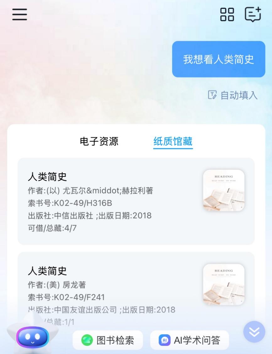 “济小图”是同济大学图书馆基于大语言模型与智能体技术打造的智能服务伙伴。它不仅熟知图书馆各项规则、全面掌握馆藏资源,更能为您提供馆务咨询、资源检索、座位预约等贴心服务。