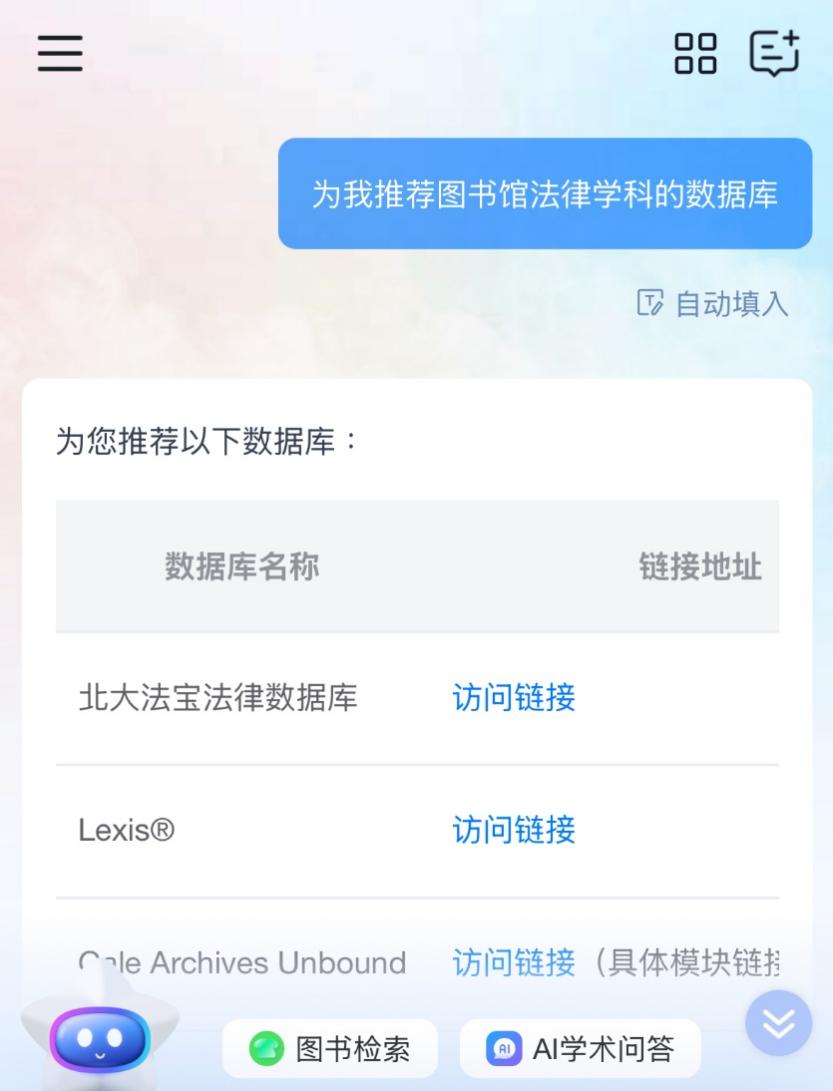 还在为难以发现适合自己的文献数据库而苦恼吗?现在只需发送您的学科方向,济小图即可推荐图书馆已采购的相关数据库资源,助您快速定位高质量学术资源。