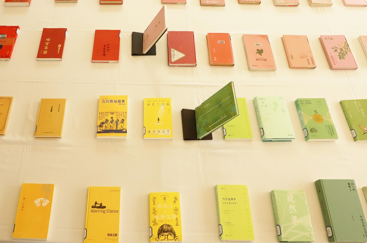 走进文榷堂14楼的书展展厅,你不用想“我应该读哪类书”,走进来,凭第一眼的颜色直觉,随手抽一本——像开盲盒一样,把书带走。