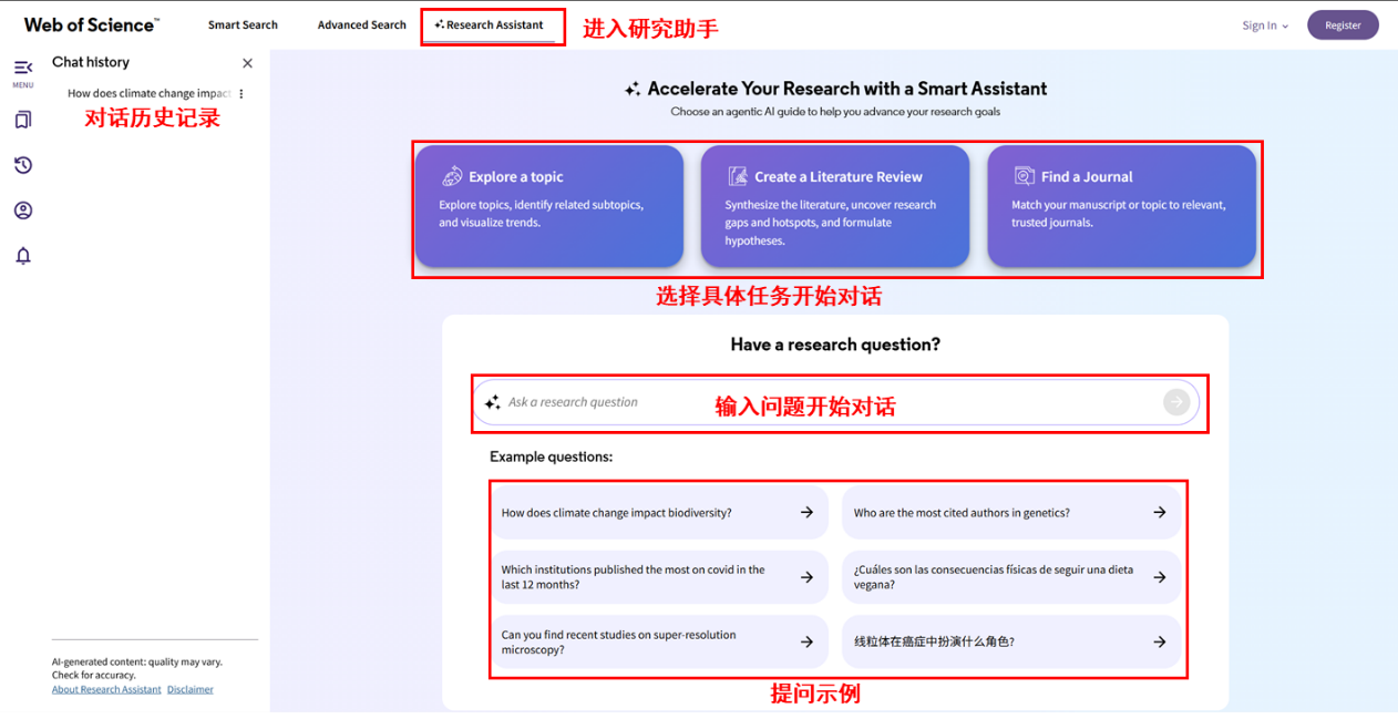 - 随着人工智能(Artificial Intelligence,AI)技术的迅猛发展,AI在提高人们的生产力上展现出了强大的能力。近日,Web of Science研究助手在我校开通试用,这份指南将帮助广大师生快速掌握使用方法。 Web of Science研究助手简介 Web of Science研究助手(Research Assistant...