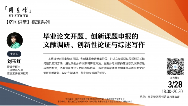 - 【济图讲堂】嘉定系列|毕业论文开题、创新课题申报的文献调研、创新性论证与综述写作讲座